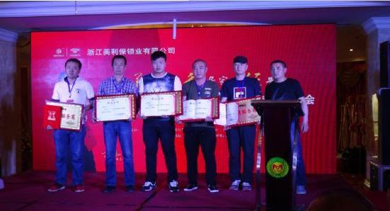 图为美利保区域总经销商诚信锁具马俊龙先生(左一)在颁奖仪式上